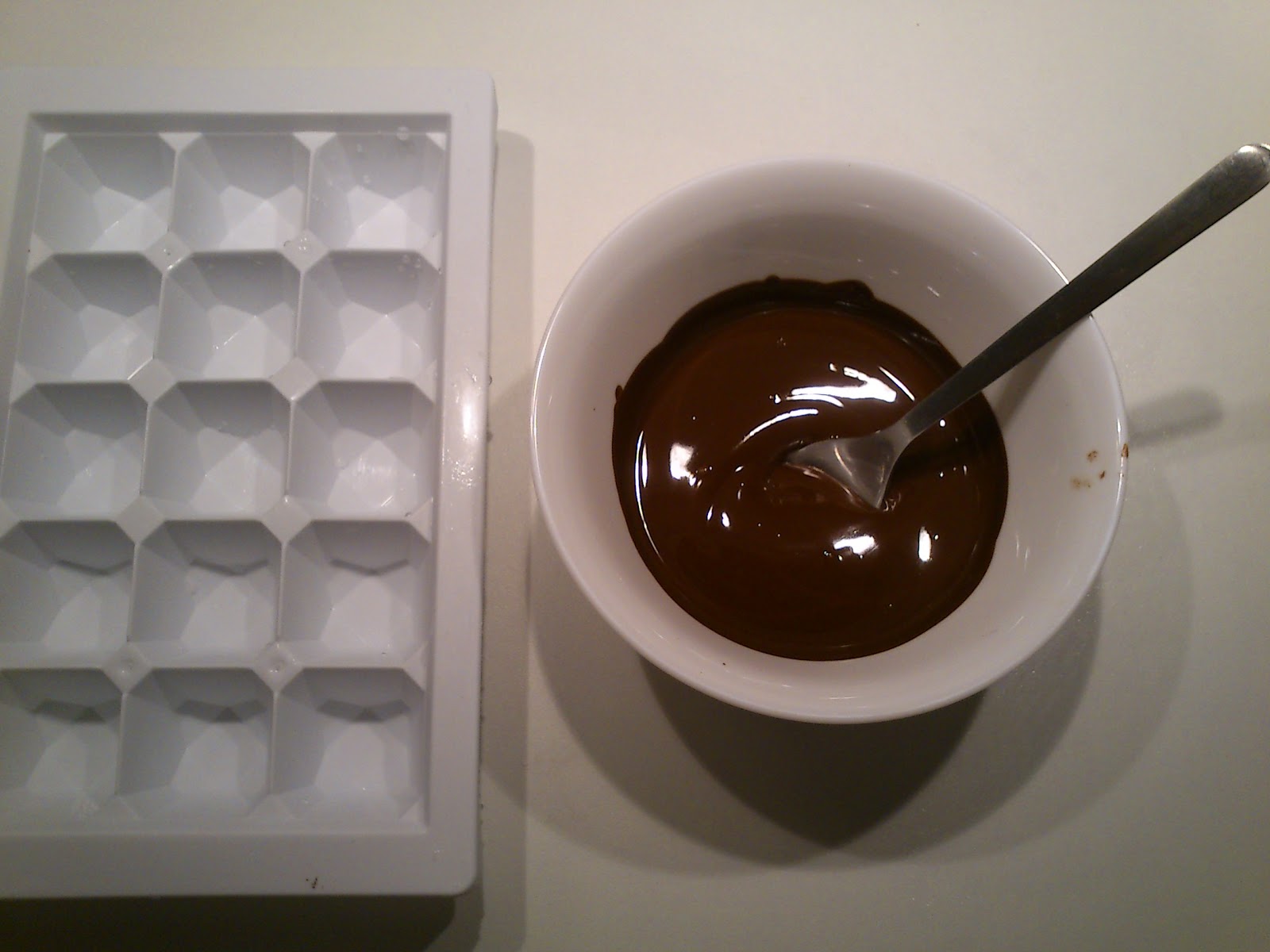 Para el molde he usado una hielera aunque lo suyo sería usar un molde para hacer bombones, pero no es cuestión de tener un chisme para cada cosa así que hay que agudizar el ingenio.