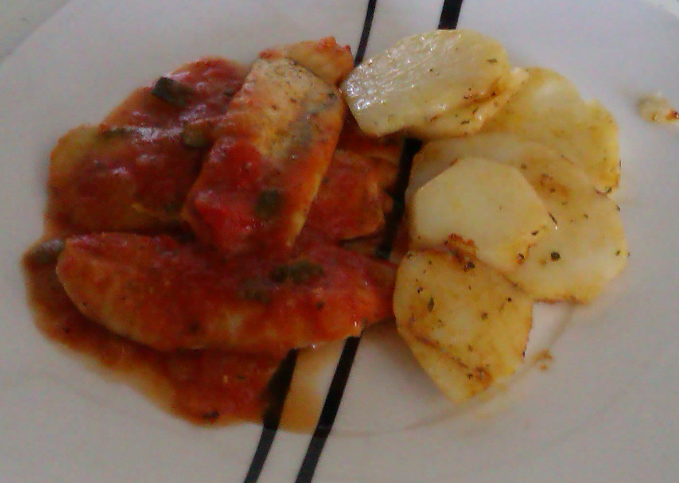Para hacer la salsa, sofreimos la cebolla y cuando esté transparente añadimos la lata de pimientos de piquillo (unos 6 ó 7 pimientos), y una parte del tomate seco troceado (ojo! reservar la mitad para decorar). Añadimos el vino, y dejamos que se evapore, mientras removemos. Lo sacamos todo del fuego, y lo incorporamos al recipiente para la batidora, añadimos la nata poco a poco, para ir viendo la consistencia, y lo batimos todo. Vamos echando sal a la salsa y probamos hasta que esté en su punto.