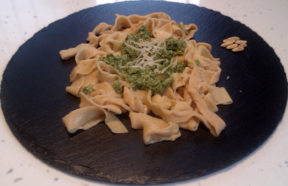 Por fin! llegó nuestro primer desafío en la cocina, y teníamos que hacer pasta al pesto. Nos quisimos salir un poco de la línea de nuestro blog de cocina fácil, y preparamos los tallarines nosotras y quedamos sorprendidas de lo fácil que es, y la diferencia de sabor con la pasta que puedas comprar en el supermercado. Nada que ver.