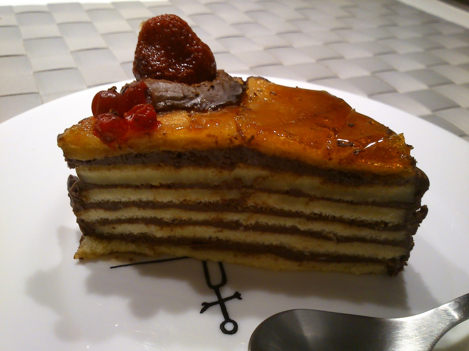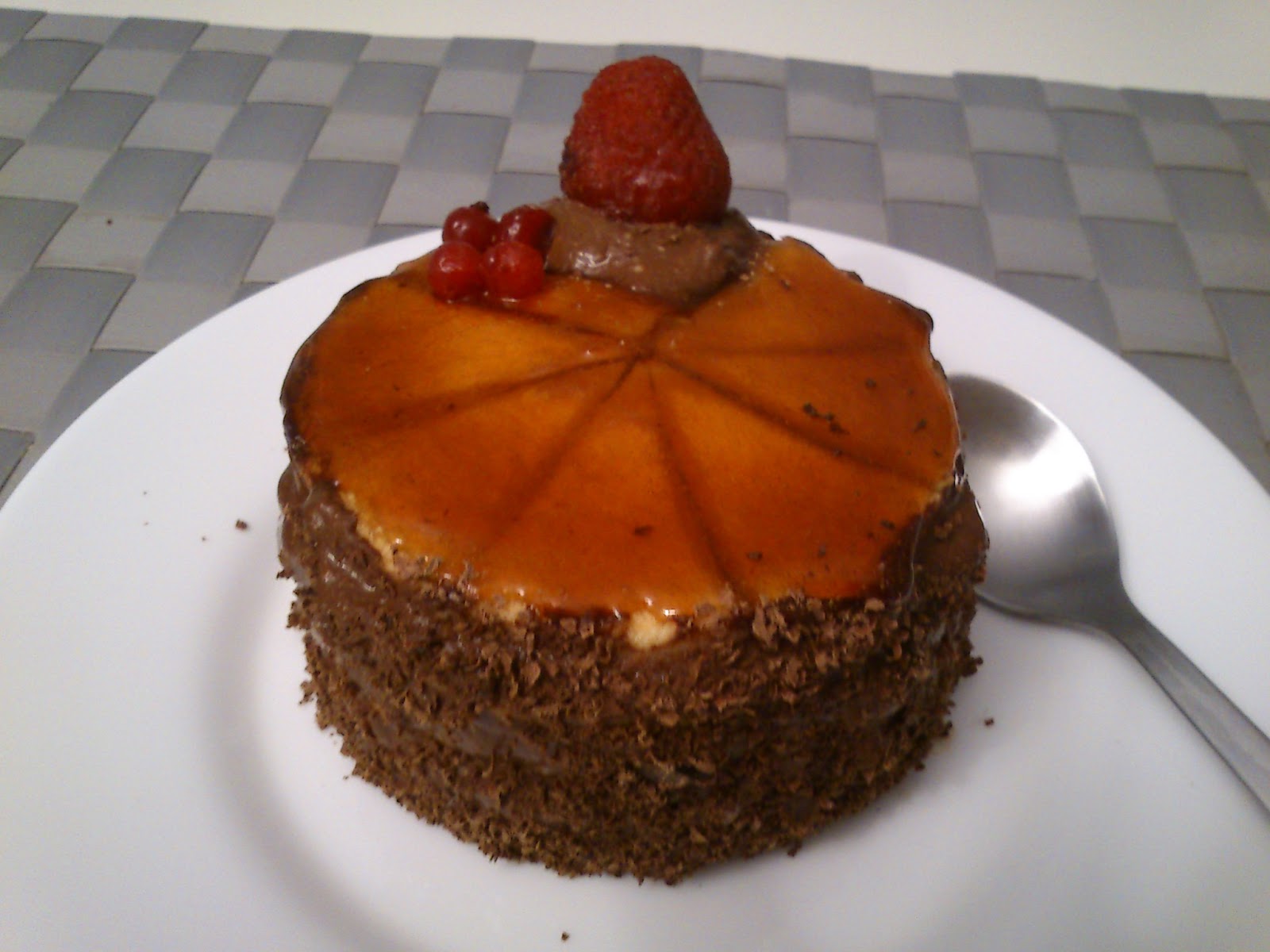Os pongo mi recetilla que al final se quedó en una mini tarta Dobos. También intenté hacerla un poco más light (por eso de la conciencia y la operación bikini) y tengo que admitir que la crema de chocolate me encantó y seguro que la repito en algún que otro postre.