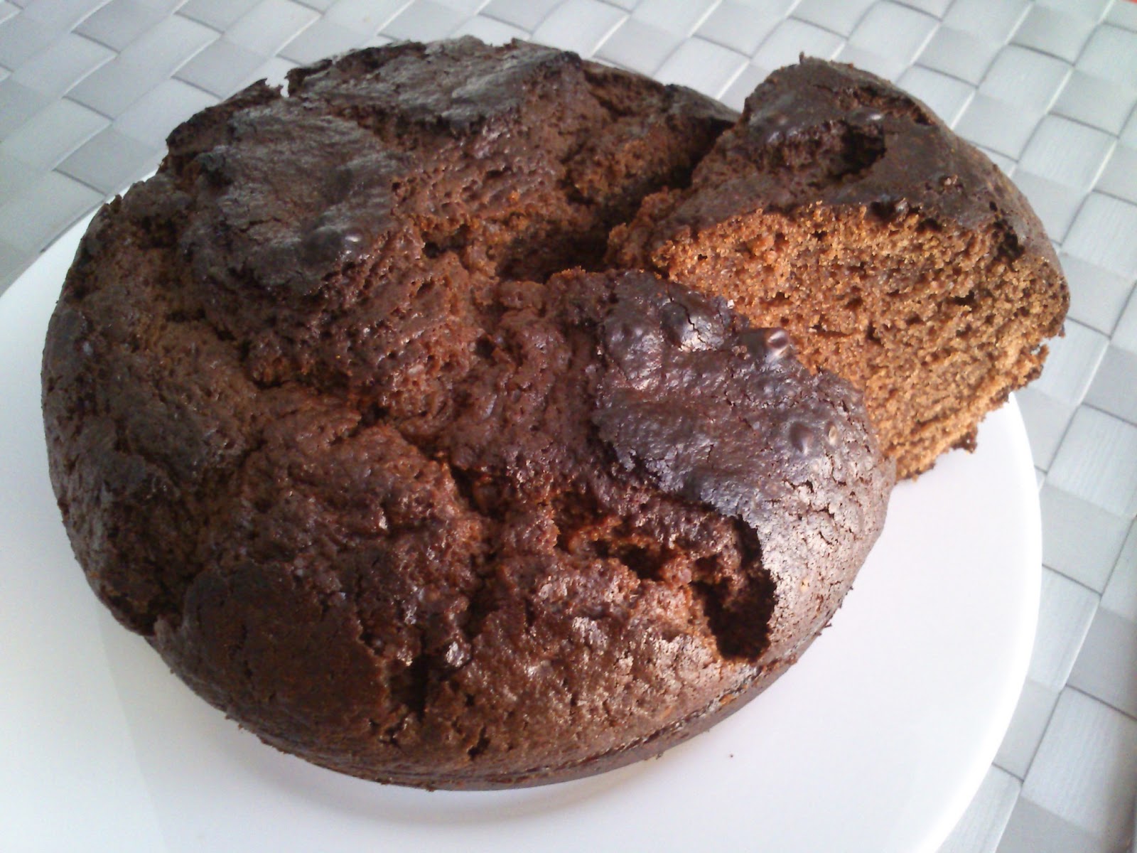 Me gustó tanto el resultado que me quedé con una de las divisiones de la masa madre y la utilicé para hacer un bizocho de chocolate (poniendo las mismas cantidades (medias en mi caso) salvo las pasas, nueces y manzana y echando en su lugar 1/4 de tableta de chocolate fondant fundido en el microondas) .