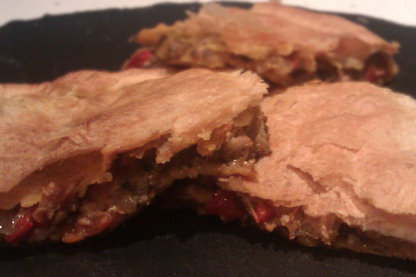 Os dejo la receta de la empanada tradicional de pimientos y atún, con un toque muy especial, el de la oliva negra y el comino. El hojaldre es comprado, está claro que mucho mejor hacerlo... pero hoy en día, no hay tiempo:)