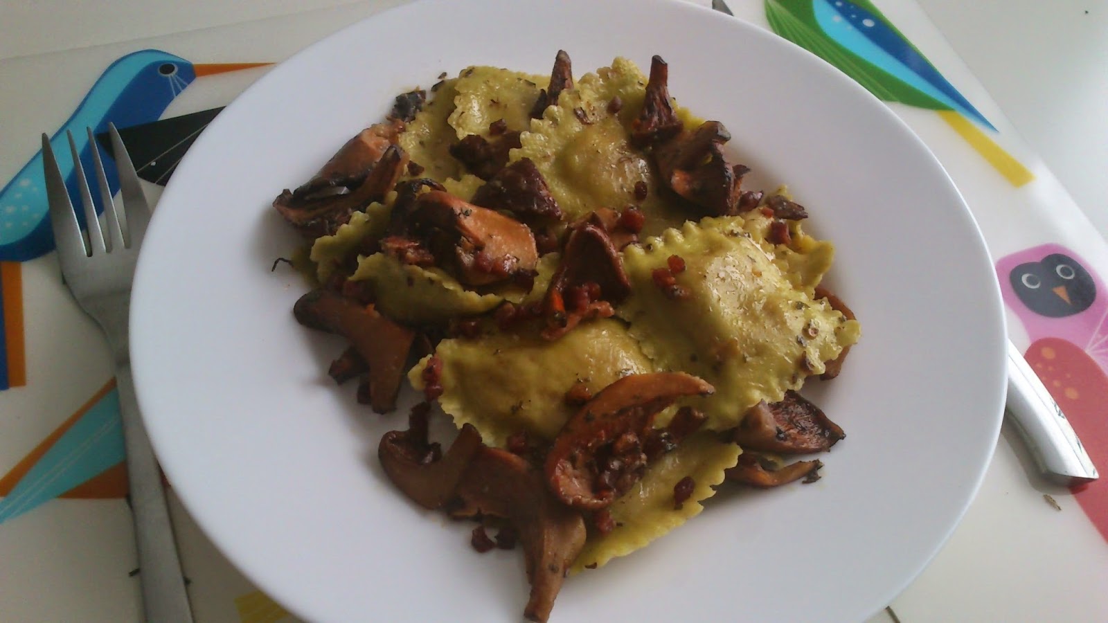 Una buena combinación!! los niscalos me gustan muchos y acompañados de ese jamon y los raviolis un plato completo y muy rico!!Bs.