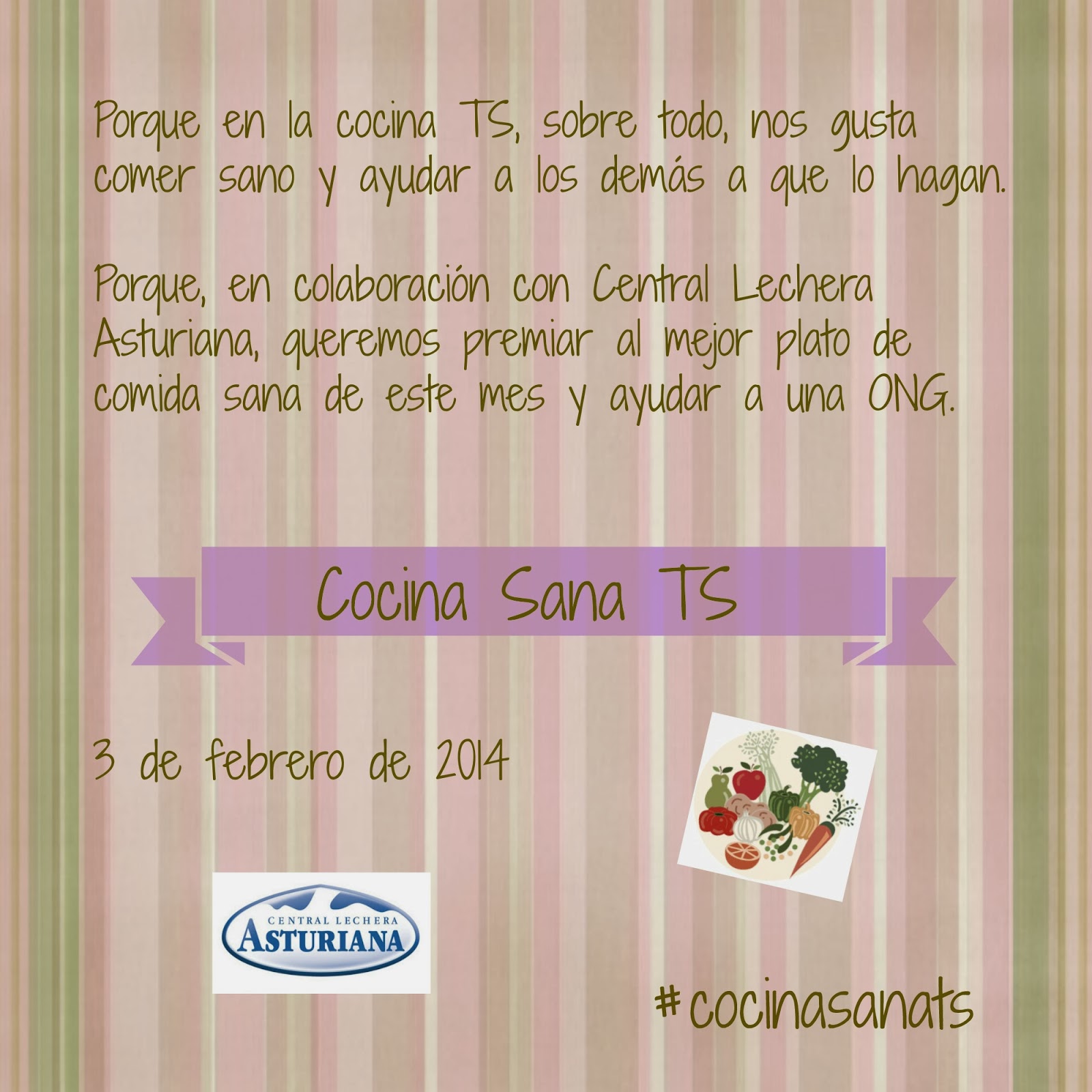 Y, qué es exactamente lo que va a ocurrir este mes? Pues bien, este mes tú puedes ser el ganador de un concurso en el que prima la comida sana por encima de todo. Y además, con tu colaboración, Central Lechera Asturiana, donará 3 litros de leche al Banco de Alimentos de Asturias por cada “me gusta” que, en Facebook, obtengan la receta ganadora y la que quede en segundo lugar. Interesante, verdad? Pues contamos contigo, porque ser solidario es cosa de todos!!!!