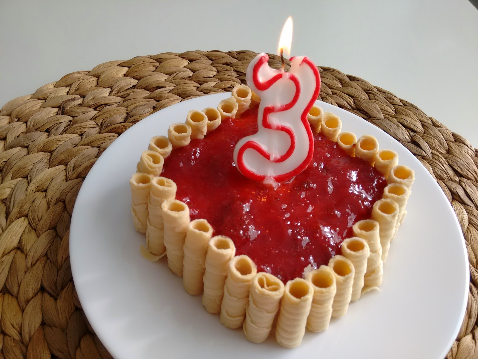 Este mes en el Desafío en la cocina nos han propuesto que hagamos una tarta chalota para celebrar su tercer aniversario. Según he podido comprobar en Internet es una tarta de origen francés y consiste en un molde rodeado o forrado con bizcocho genovés o de soletilla con un relleno tipo crema pastelera o mousse y si se quiere con algo de fruta. He intentado hacer una versión ligera ya que nos la íbamos a comer en casa entera y no me apetecía que fuera ni muy grande ni muy pesada, que con estos calores ya apetecen cosas menos contundentes!Para forrar el pastel he usado barquillo y como relleno una tarta de cuajada y queso fresco batido por supuesto con mermelada de fresa por encima :) La mermerlada la he hecho casera pero por supuesto puede ser comprada, aunque el sabor no tiene nada que ver.