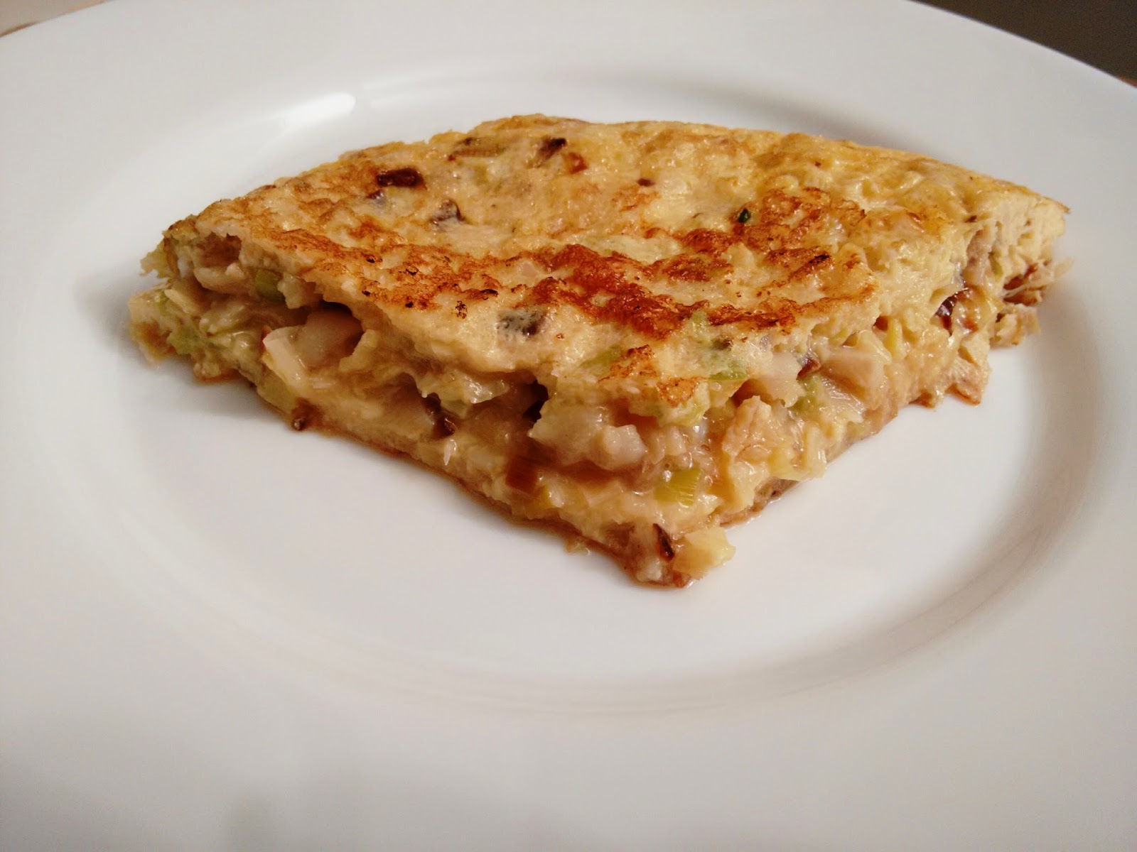 Desde que se la vi publicada en su blog a mi amiga Patri supe que tenía que hacerla aunque como siempre, la adapté a lo que tenía en la nevera :) Aunque esta tortilla es muy famosa sobre todo por el norte de España, nunca la había probado y tenía muchas ganas. Sobra decir que con lo que me gusta a mí el bacalao, que es mi pescado favorito, esta tortilla se va a convertir en unas de mis preferidas!Ingredientes: