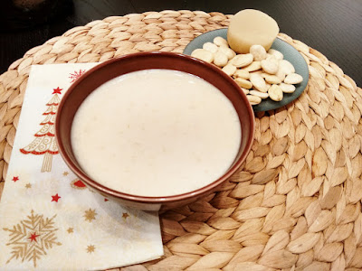 Esta sopa dulce de almendras es típica en los postres navideños sobre todo en Madrid. Se hace con una pasta de almendra que se puede comprar en pastelerías y supermercados y aunque es muy fácil de hacer requiere de mucha paciencia porque hay que estar muuuuuuuucho rato con la cuchara dando vueltas.