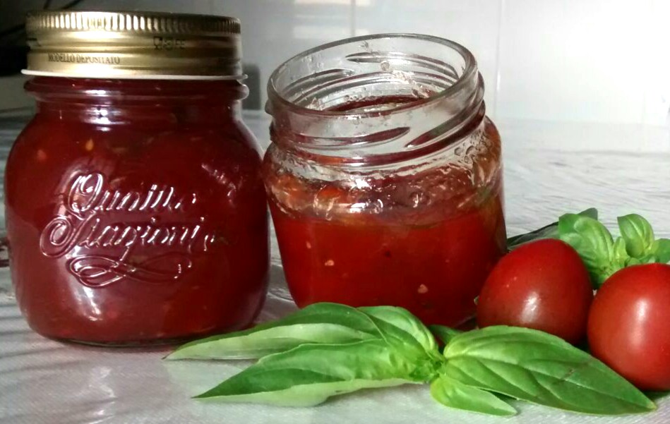 Mi abuela se ha vuelto fan de una mermelada de tomate con albahaca que ha sacado hace poco un marca conocida de mermeladas. Cuando me enteré, me apeteció hacerle por sorpresa unos tarros de esta mermelada tan original y que acompaña muy bien a quesos, foie o carnes. Aunque aun no estamos dentro de la temporada buena de tomates, este verano pienso volver a repetirla sin dudarlo pero haciendo mucha más cantidad. Es una mermelada con un toque muy fresco por la albahaca.Ingredientes: