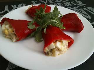 No les he puesto patata hervida ya que eran para cenar y quería algo ligero pero rellenos con la típica ensaladilla rusa de toda la vida quedarían estupendos.