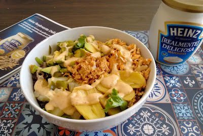 Para hacer el aliño he usado la nueva mayonesa Heinz "[Realmente] deliciosa" elaborada con huevos de gallinas camperas e ingredientes naturales que además de sana tiene un sabor fantástico.