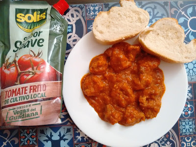 Para esta receta he usado el tomate frito Solis de cultivo local que venía con la DegustaBox de este mes. ¿Que qué es la DegustaBox? Pues es una caja que te mandan de manera mensual con entre 10 y 15 productos novedosos variados que van desde bebidas, especias, salsas, snacks y dulces. En esta ocasión los productos que había eran: mayonesa Realmente Deliciosa Light de Heinz, olivas aliñadas de Fragata , snacks de morcilla, altramuces Saladitos, sidra marca The Good Cider, bipack Alba horneados, horchata Chufi, tomate frito Solis, mejillón ahumado Isabel, Toppy ensaladas de Frit Ravich, Lion Granola de Nestle, Café Vainilla Latte, galletas de chocolate Pick Up de Bahlsen y escamas de pimentón ahumado La chinata. Todo esto por 14,95 euros gastos de envío incluídos.¡Mucho menos que su valor real!