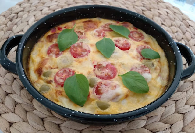 Esta receta siempre me ha llamado la atención, es una especie de tortilla a la italiana que le ponen ingredientes a los que no estamos acostumbrados en España. Por lo que he podido leer por Internet se le puede echar cualquier cosa: desde carne, verduras, quesos... ¡lo que tengamos por la nevera!